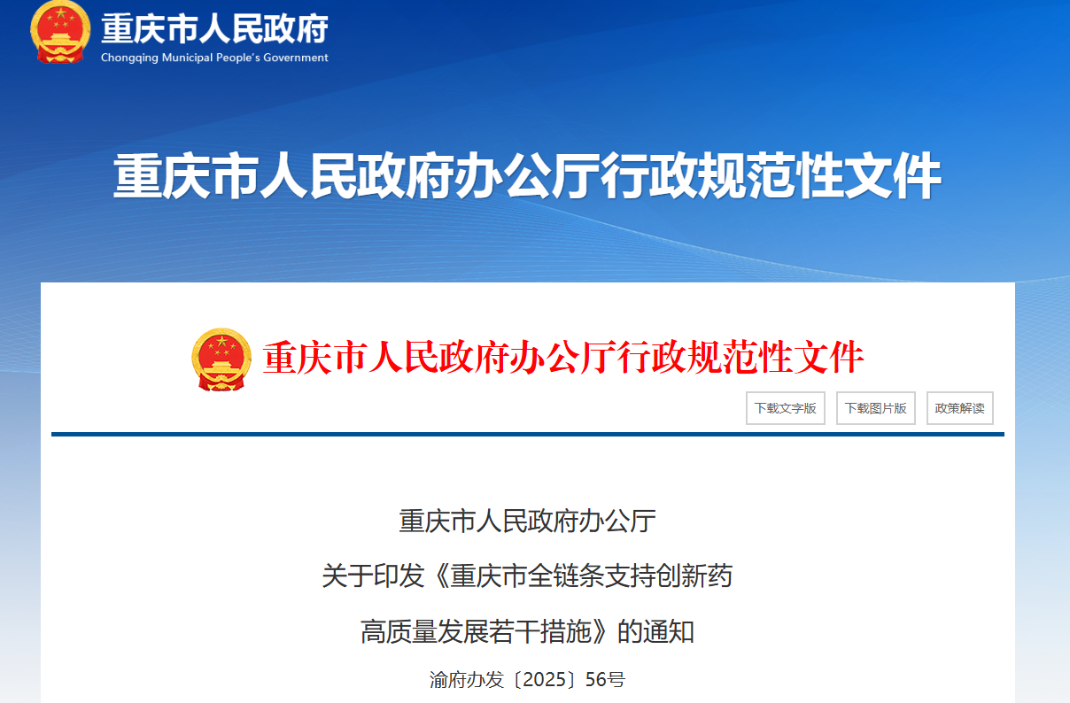 日前,重庆市政府办公厅印发《重庆市全链条支持创新药高质量发展若干措施》,聚焦创新药核心技术突破、产品加速培育,持续优化产业创新体系。其中提出促进创新中药开发,中药经典名方产品每个奖励100万元。