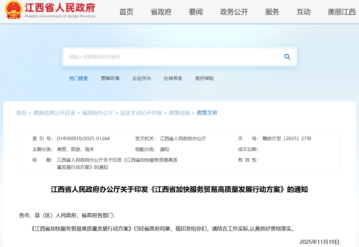 近日,江西省人民政府办公厅印发《江西省加快服务贸易高质量发展行动方案》。其中,《方案》将“拓展中医药服务贸易”纳入聚焦发展重点领域。