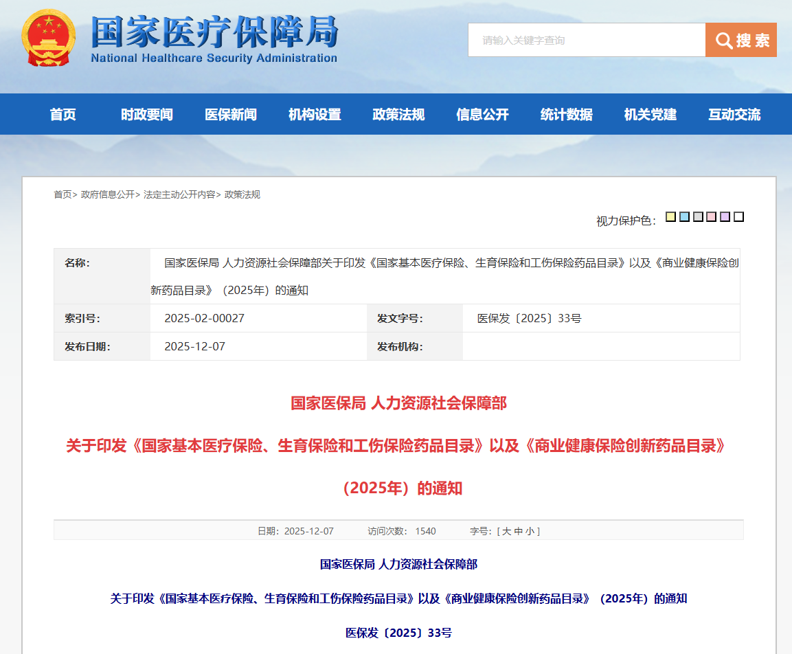 12 月 7 日上午,2025 创新药高质量发展大会于在广州召开,会议上正式发布了 2025 年《国家基本医疗保险、生育保险和工伤保险药品目录》和 2025 年《商业健康保险创新药品目录》。